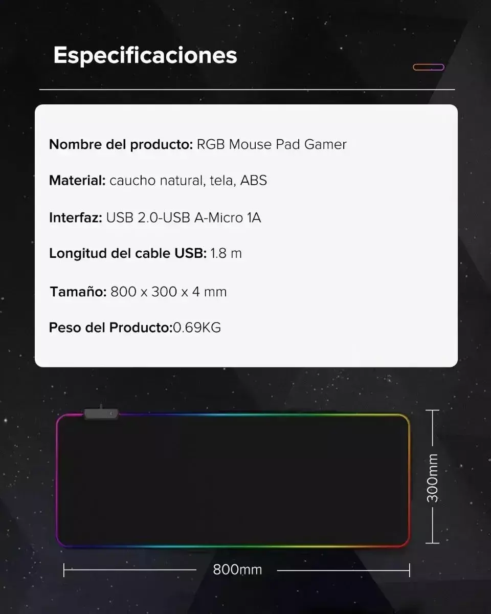 🔘 Control con un solo botón: cambia modos de luz, ajusta el brillo o encendé/apagá la alfombrilla.