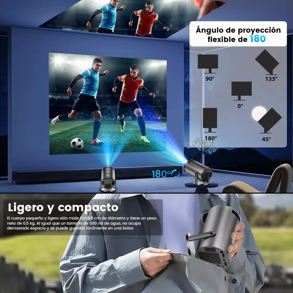 Transformá tu casa en un auténtico cine con el proyector inteligente HY300PRO, un dispositivo compacto, potente y versátil que ofrece una experiencia visual envolvente para tus películas, series, juegos o presentaciones. Gracias a su sistema operativo Android 11, conectividad avanzada y gran calidad de imagen, disfrutarás de tu contenido favorito sin necesidad de dispositivos adicionales.